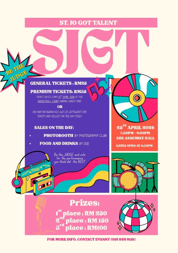 Come one Come All! Join us now! Post author:admin Post published:20 April 2026 Post category:Uncategorized Don’t just hear about it — BE THERE!St Jo Got Talent is bringing the stage to life, and tickets are selling fast. Grab yours before they’re gone! You Might Also Like Primary 1, Form 1 and Year 7 Intake for Year 2027! Registration open until 30th April 2026! 1 April 2026 St. Joseph’s Private Schools awards bursary to their students with top IGSCE and SPM results! 15 July 2024 Flame! – Form Three Camp 2019 14 October 2019